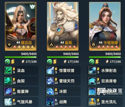 2、水属性法伤阵容推荐:德古拉 ,宙斯 ,里昂